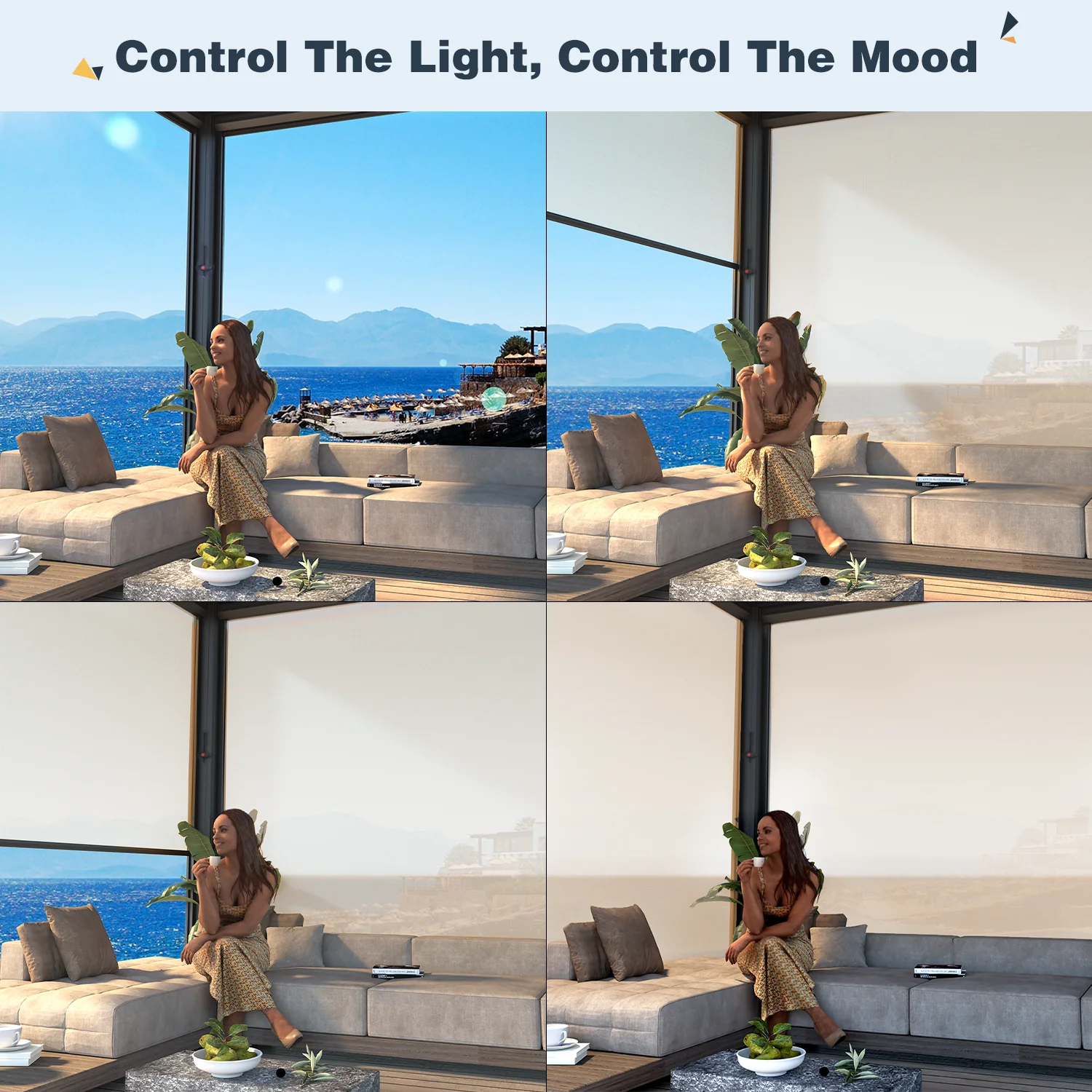 Using crank handles makes the changing louvered roof simple. Your sunlight level can be full sun, dappled shadow, or total, weather-tight cover. Change the louvers from 0° to 135° for total environmental control and design the ideal mood for every event.